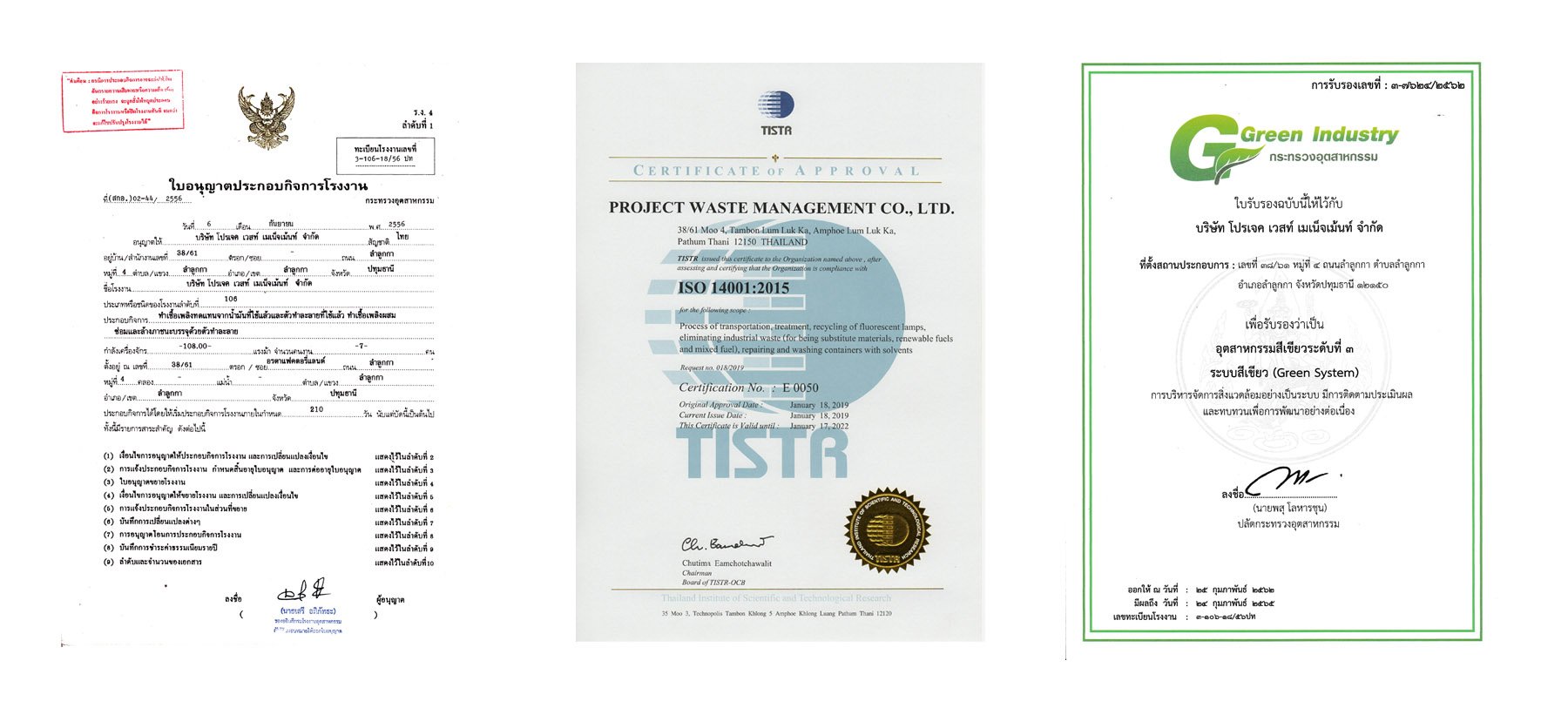 บริษัท โปรเจค เวสท์ เมเน็จเม้นท์ จำกัด (PROJECT WASTE MANAGENT CO.,LTD) ให้บริการ รับกำจัดกากอุตสาหกรรม ทุกประเภท ได้ก่อตั้งขึ้นในปี พ.ศ. 2556 มีการดำเนินงานเกี่ยวกับการรับกำจัดกากอุตสาหกรรม ได้รับอนุญาตประกอบกิจการโรงงานประเภท 106 ต่อมาภายในประเทศมีการขยายตัวของภาคอุตสาหกรรมมากขึ้น เพื่อการรองรับกากอุตสาหกรรมและการให้บริการบำบัด/กำจัด อย่างถูกต้องสอดคล้องกับกฏหมาย และได้รับความพึ่งพอใจจากผู้ใช้บริการ อีกทั้งมุ่งมั่นในการปกป้องสิ่งแวดล้อม การป้องกันมลพิษ จากการประกอบกิจการ